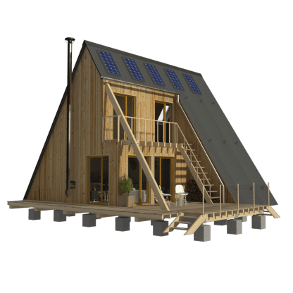 A-frame home plans Emma is a member of our A-Frame tiny house plans. Emma is a two-bedroom house with a spacious living room and even a porch. Emma’s suggested design comes with one spacious bedroom and one huge living room-kitchen, but the partitions in your house could easily be modified so that they fit your needs. The A-frame design is intended to save time and to be energy and water-efficient. The roof/walls’ size means that there is more than enough space for several sun-energy collectors. Optionally, like all of our tiny house plans, particularly with Kelly, you can add a water tank to save water and recycle. As for heating solutions, there are several options. Many of our designs count on log burners, as is typical for most tiny houses, but electric heating and other solutions are also possible.