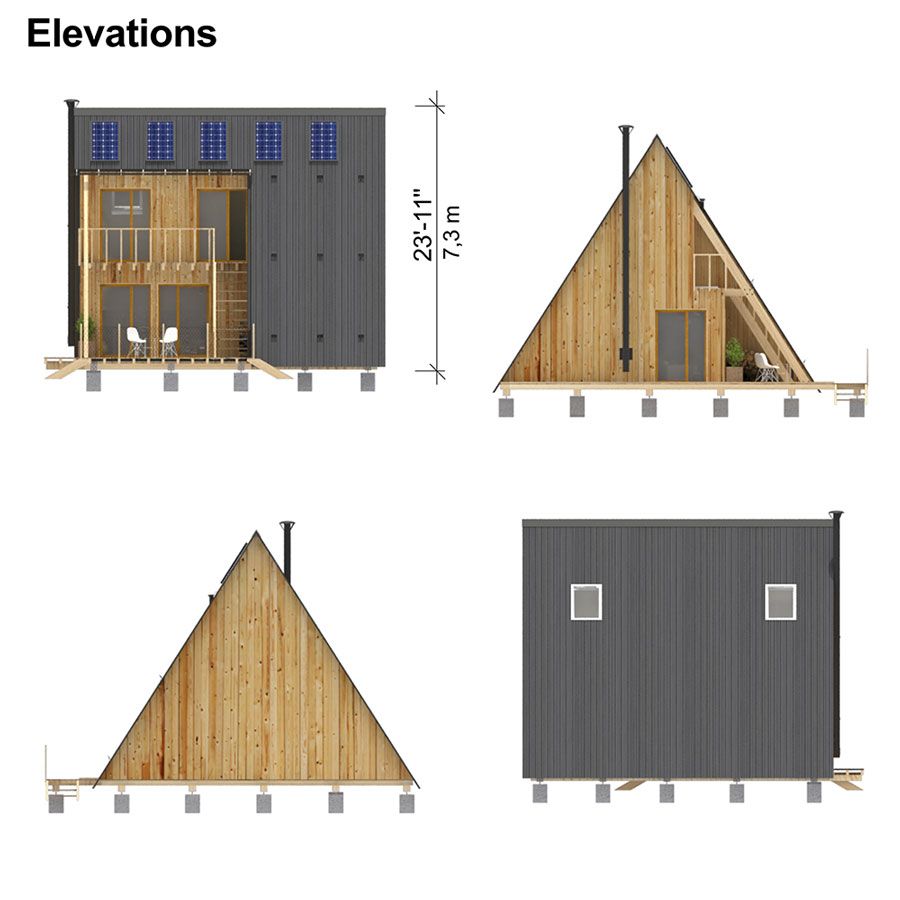 A-frame home plans Emma is a member of our A-Frame tiny house plans. Emma is a two-bedroom house with a spacious living room and even a porch. Emma’s suggested design comes with one spacious bedroom and one huge living room-kitchen, but the partitions in your house could easily be modified so that they fit your needs. The A-frame design is intended to save time and to be energy and water-efficient. The roof/walls’ size means that there is more than enough space for several sun-energy collectors. Optionally, like all of our tiny house plans, particularly with Kelly, you can add a water tank to save water and recycle. As for heating solutions, there are several options. Many of our designs count on log burners, as is typical for most tiny houses, but electric heating and other solutions are also possible.