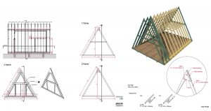 Complete set of material list + tool list. A very detailed description of everything you need to build your A-frame tiny house.