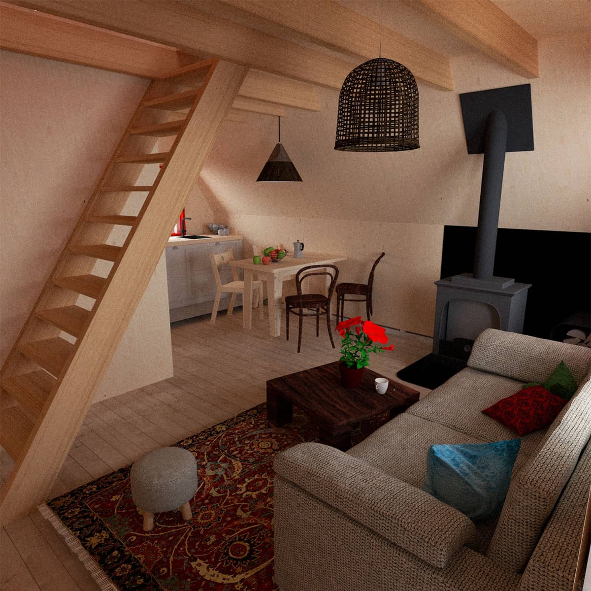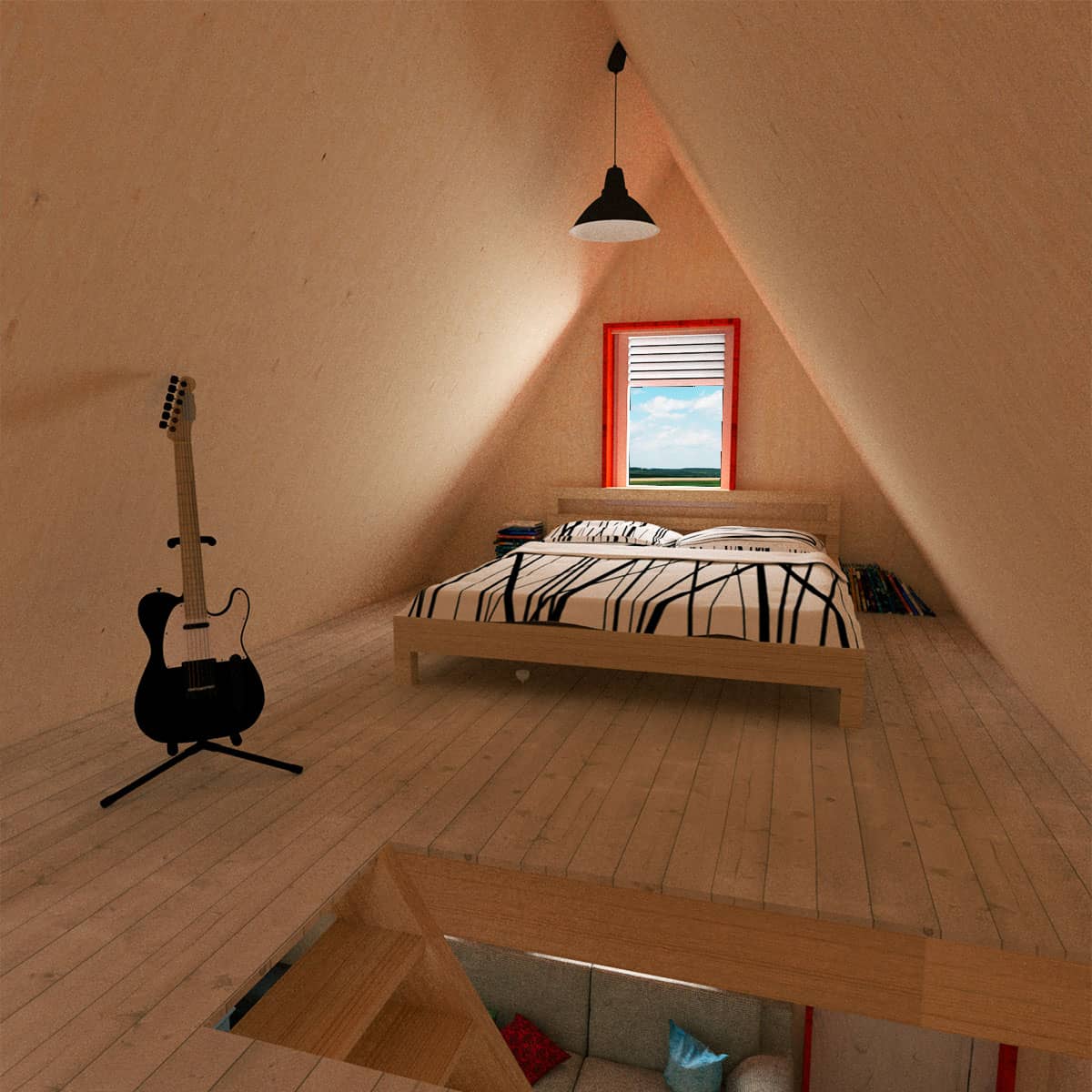 Complete small a-frame plans (pdf): layouts, details, sections, elevations, material variants, windows, and doors.