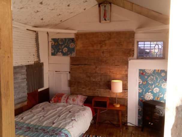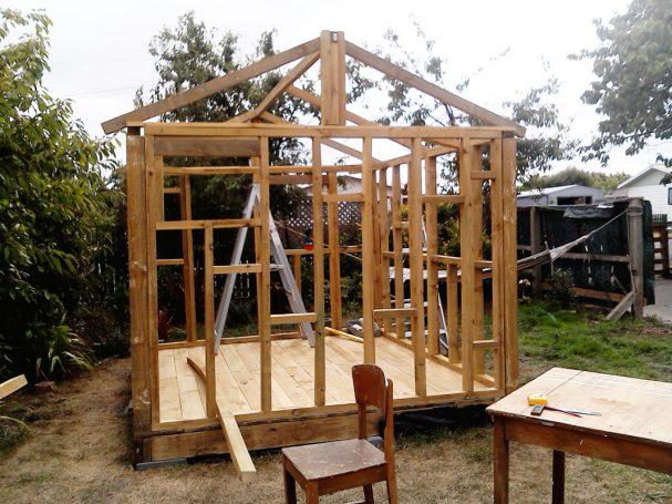 This is a love story about a working shed plan that met a creative builder, and turned into a tiny one-bedroom wooden house. The builder’s name was Julie and it all happened in Rakaia, New Zealand. With a little help from our friend, Joshua’s guide, Julie took her tools and got to work. And within a few days, Bebe was born. Normally, Bebe is designed to serve as garden tool shed. But as it turns out, with a porch and simple foundations, Julie thought that Bebe would be better off for living in, and instead of garden tools, Bebe’s gable roof shelters a big double-bed.