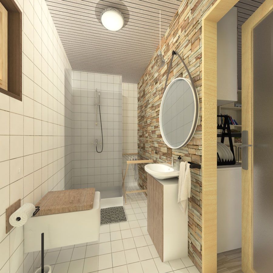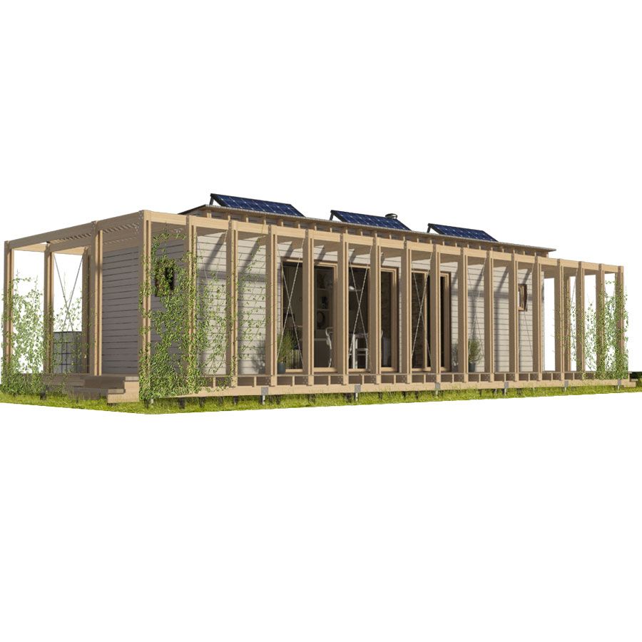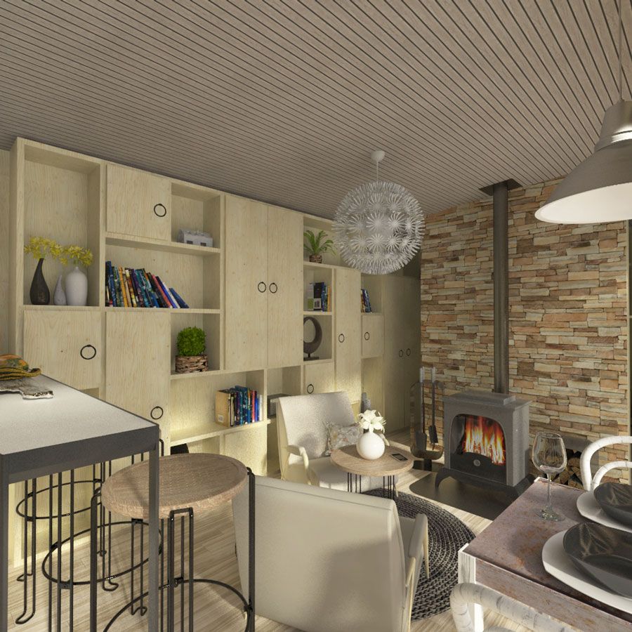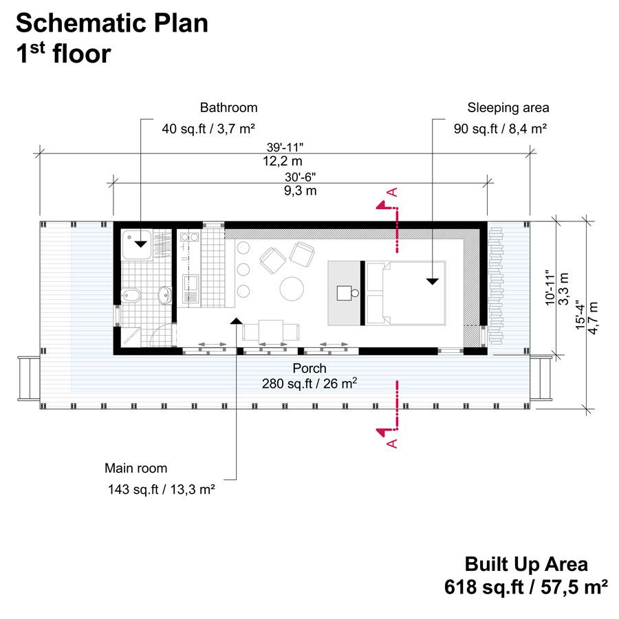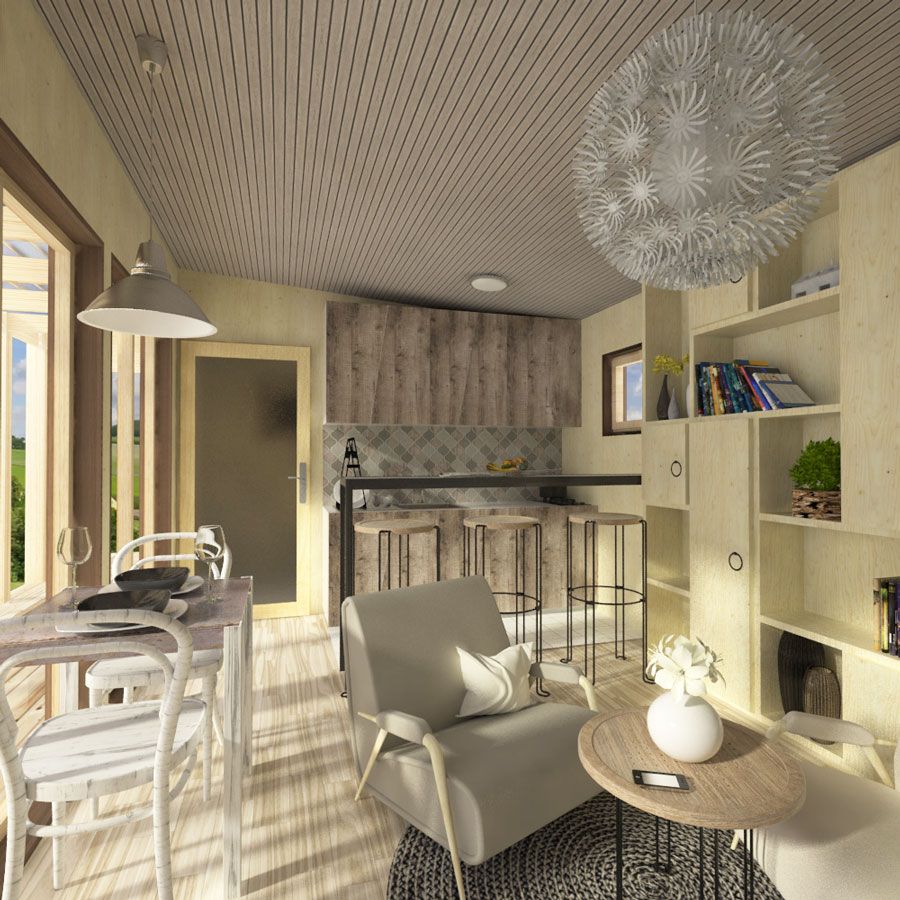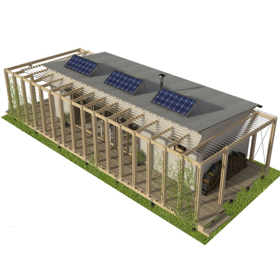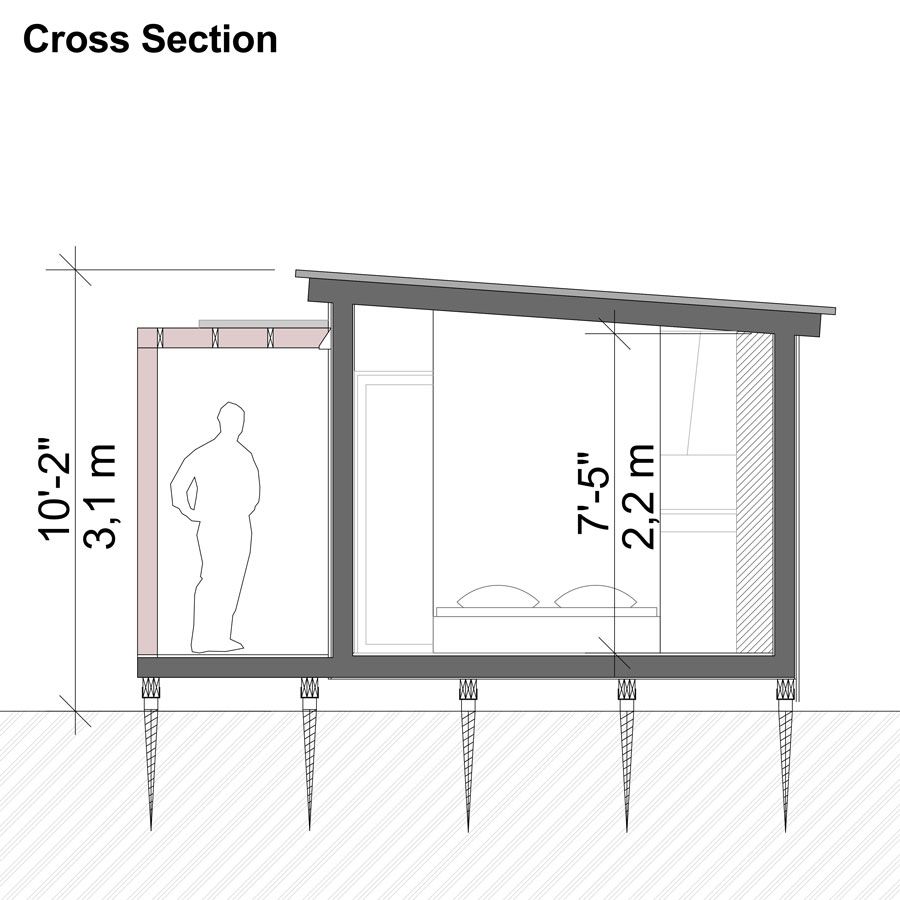Cabin Kit Plans Samantha belongs to our family of 1 bedroom houses. Samantha offers one big spacious bedroom that can also be used as a living room (with space-saving options about which you can find out more in our small house blog), a kitchen, and a bathroom. The design’s style is very similar to that of Expandable Small House Plans Kelly, combined with a shed roof like Candy, a vacation cabin plan. Thanks to that, this tiny house plan allows for further expansion, whether by adding an extra room or a loft by adding a gable roof instead of the shed roof. Cabin Kit Plans Samantha’s floor plan also comes with a porch. Like all of our tiny house plans, Cabin Kit Plans Samantha allows for eco-friendly solutions to save water and energy and help reduce all the extra costs of buying a house. (You can find out more about that in our Small House Blog and our top product, the book HOW TO BUILD A TINY HOUSE). Pin it up!