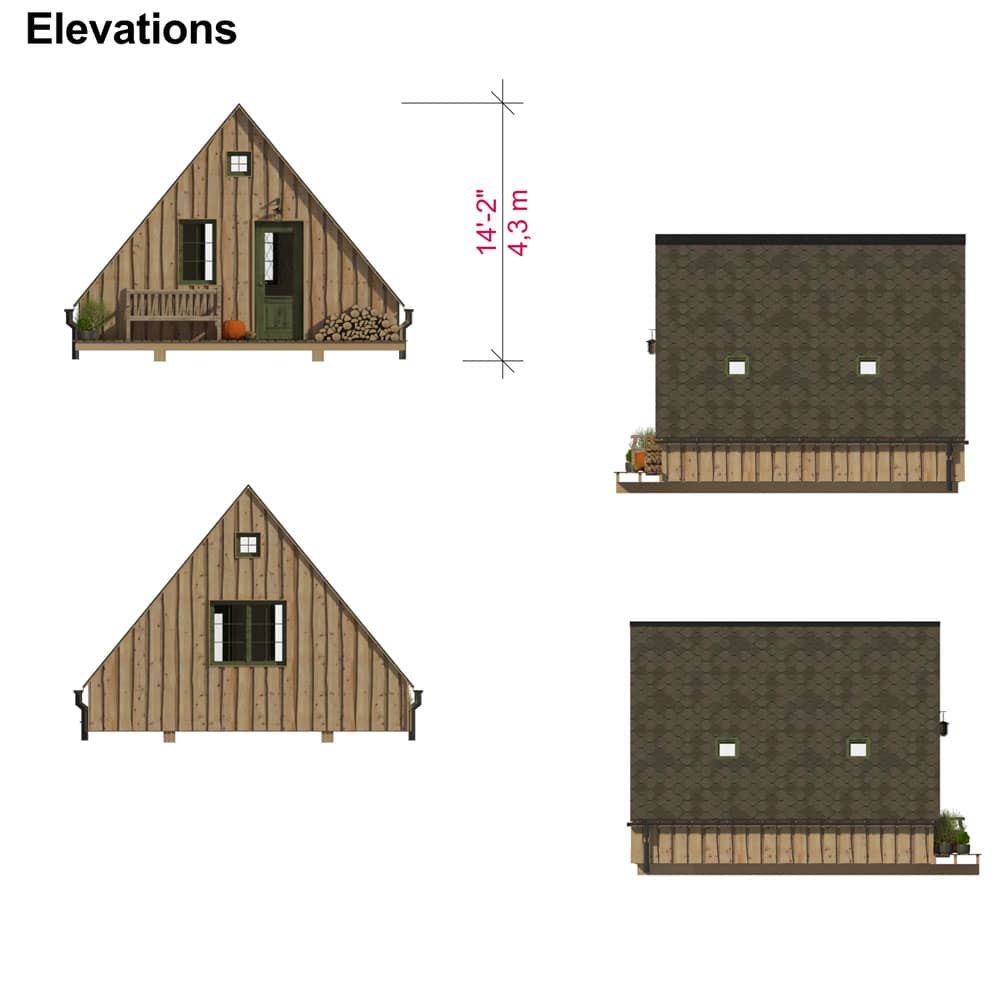 Complete set of Studio Shed Building Plans (pdf): layouts, details, sections, elevations, material variants, windows, doors.
