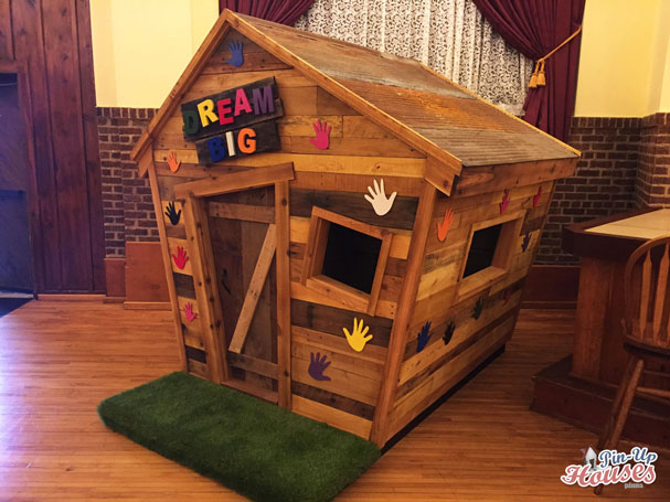 Designed originally for children, but no one says you cannot invite adults in. Add a porch, stairs and Christmas lights to your outdoor playhouse and party with your grandparents can begin.