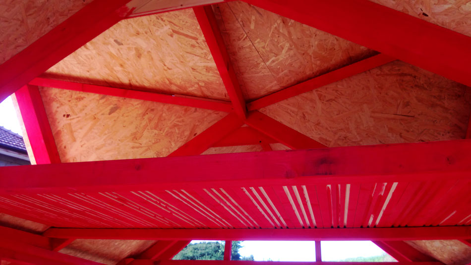 Radek – thank you again for so amazing photos, seriously! – was building this outdoor playhouse for children for his friend following our playhouse plans, which he adjusted to fit in the loft. Last time the construction timber frame was finished and a roof with roof shingles and all the cladding. Sooo that seems like a perfect time to start with wall cladding. In this case light colored narrow wooden planks are used and it looks indeed very neat and beautiful already, even with window openings being still just empty holes, don’t you think?