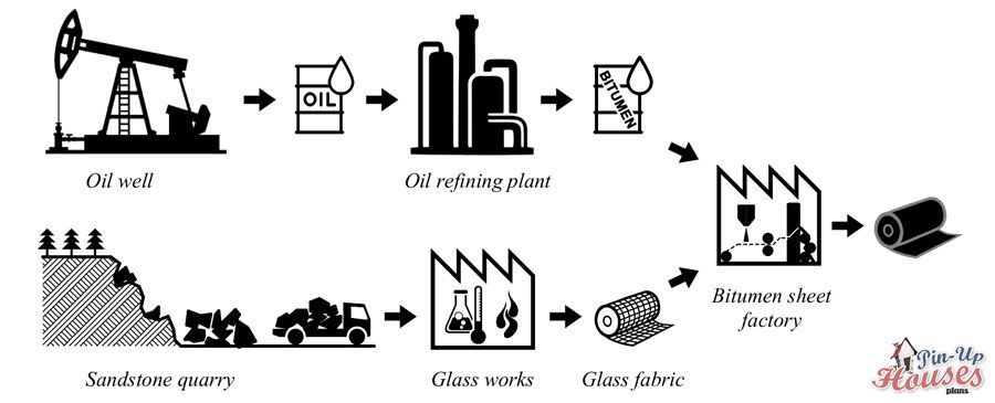 Asphalt can be used in several styles. Either you can lay entire plates on the roof, or you can also get shingles made of asphalt. The asphalt holds on wooden plates, formwork, and is usually attached to the wooden support.