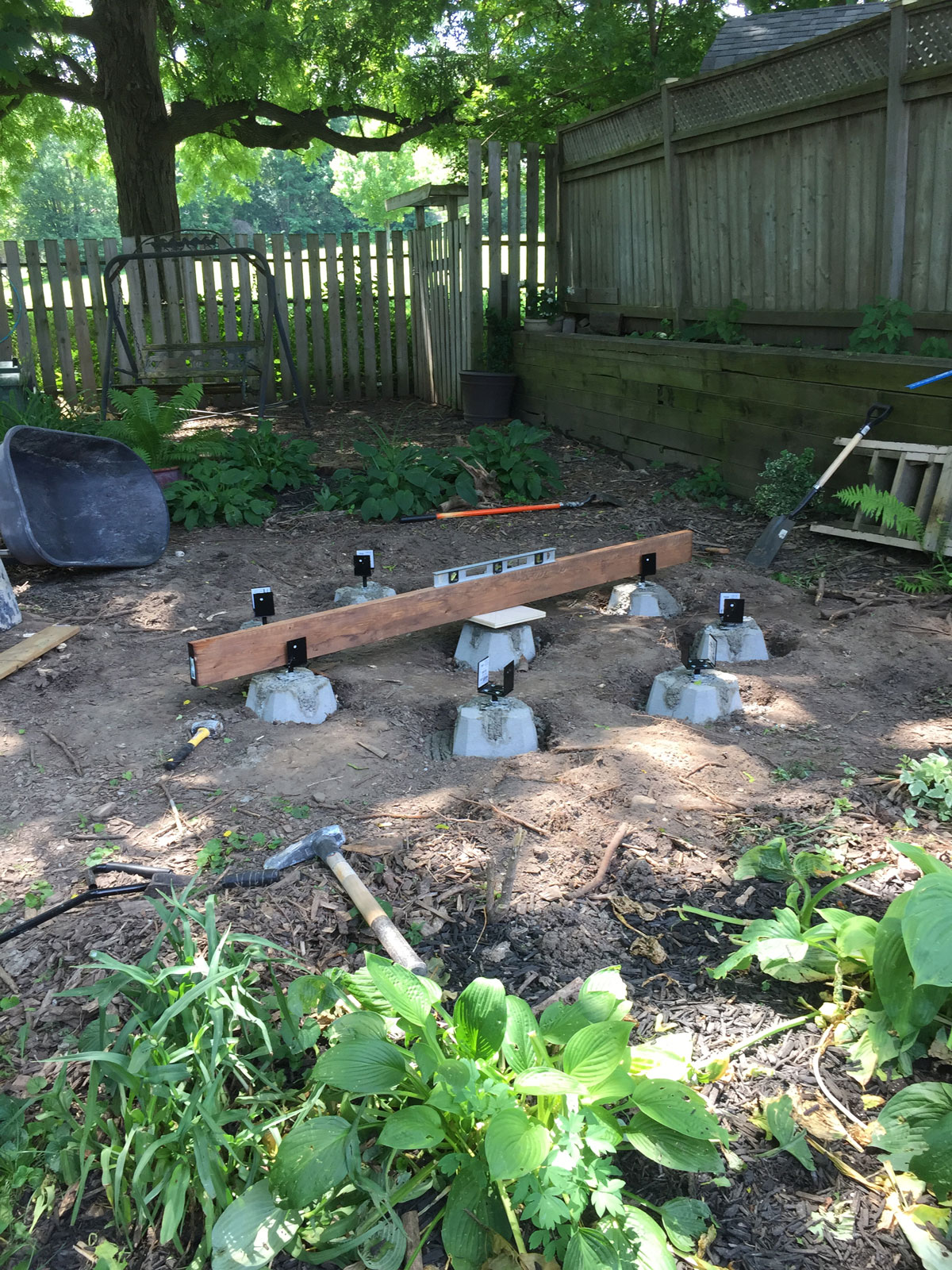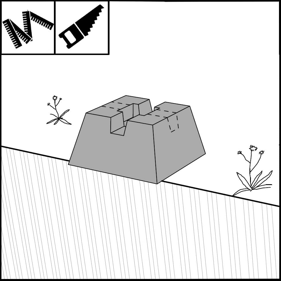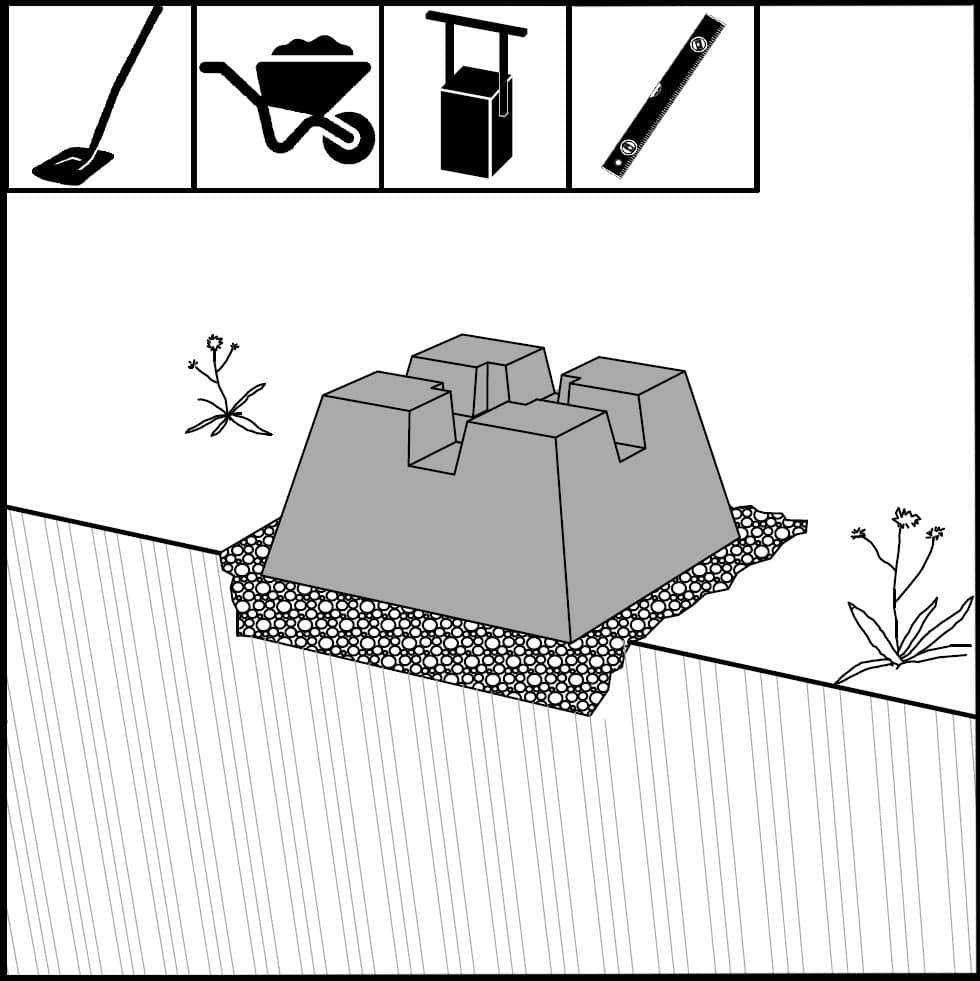 This is a classic solution for the foundation of terraces or small children’s houses or gazebos. Precast concrete can be bought in different sizes. It is advisable to remove the soft soil and fill it with gravel before placing them. As with other types of foundations, it is important to align all the footings precisely. It is possible that this type of foundation will still sit down after construction is complete, but by using a hever and shims the problem can be neatly solved.