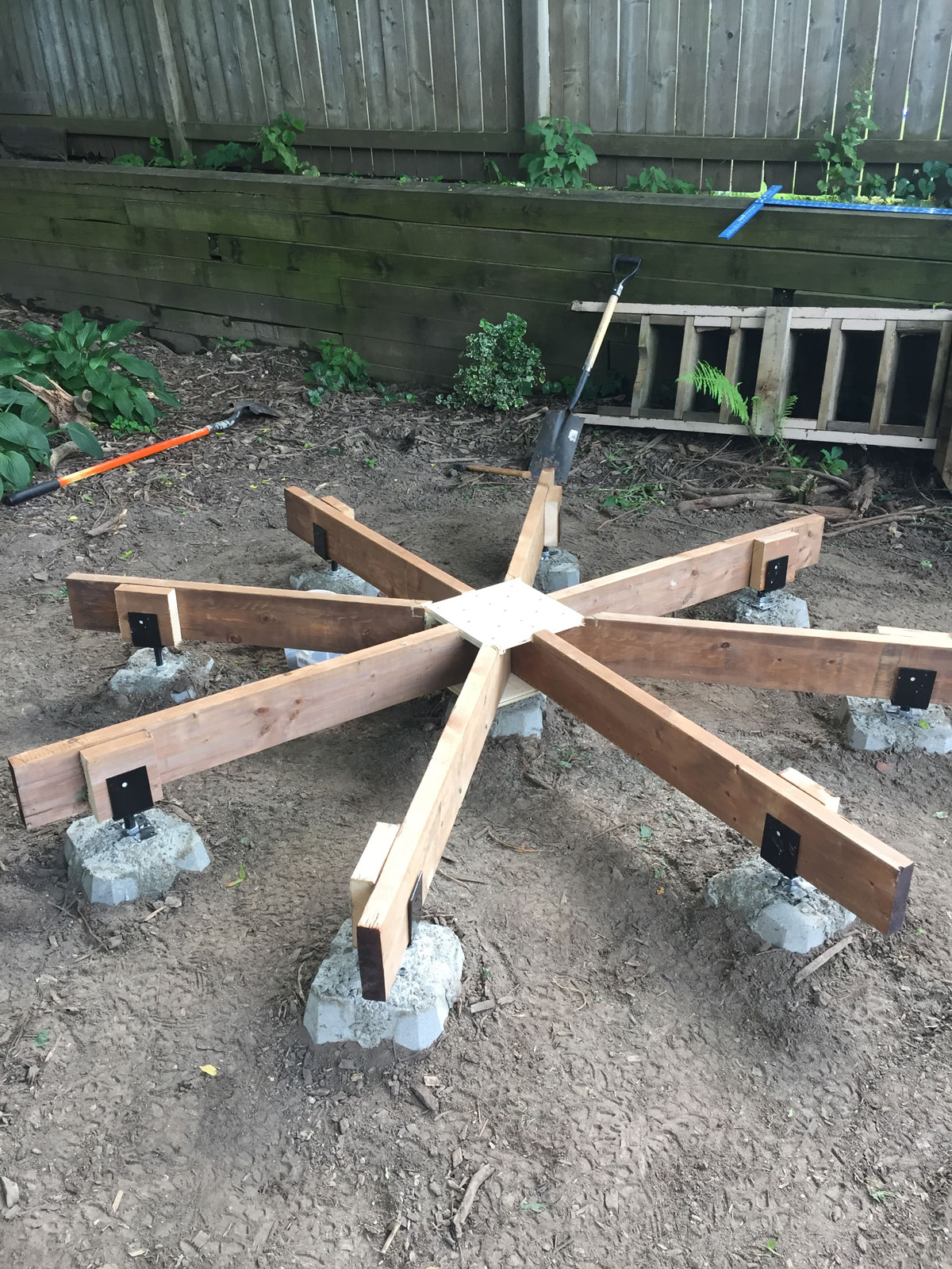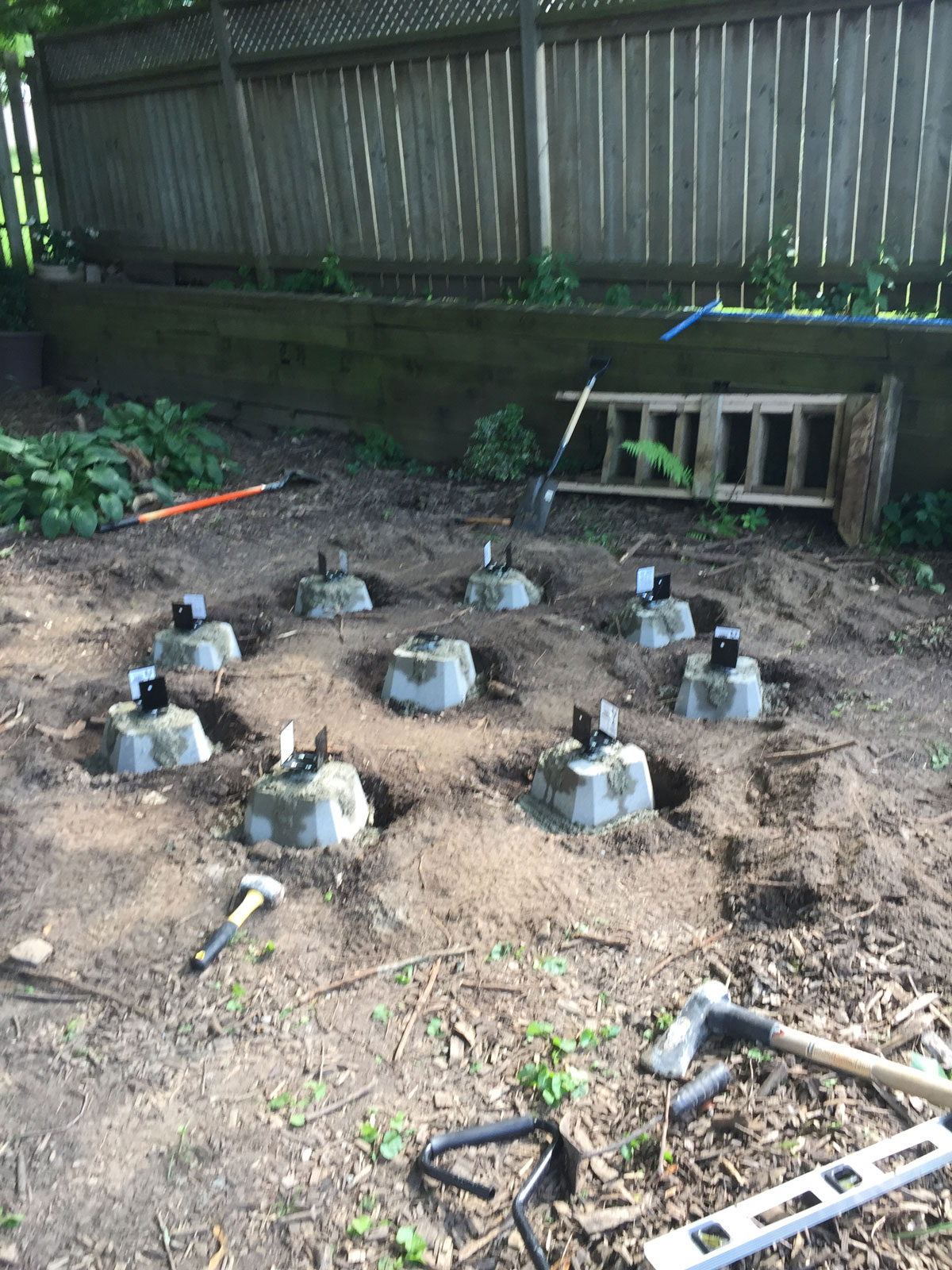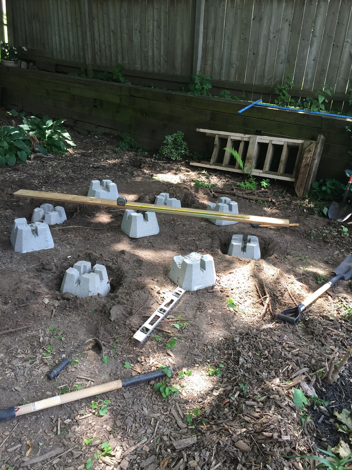 This is a classic solution for the foundation of terraces or small children’s houses or gazebos. Precast concrete can be bought in different sizes. It is advisable to remove the soft soil and fill it with gravel before placing them. As with other types of foundations, it is important to align all the footings precisely. It is possible that this type of foundation will still sit down after construction is complete, but by using a hever and shims the problem can be neatly solved.