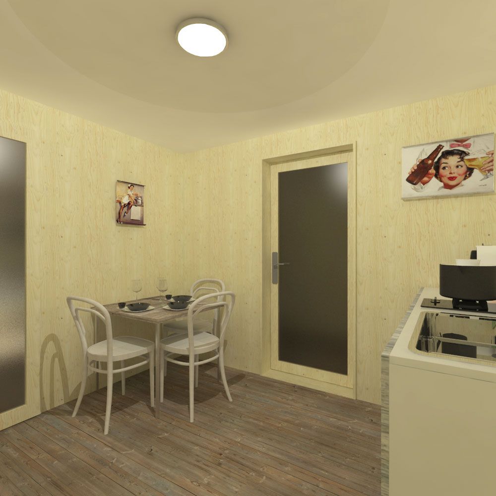 Specially designed for eco-friendly green living, Eco-Cabin Plans Nova is the DIY house plan of choice for pinup house enthusiasts. Nova is a 1 bedroom house type of floorplan that can be used as a recreational building or a weekend house. Being a two-story house with a porch and creatively arranged interior for space-saving solutions, Nova belongs to our ever-growing family of eco-friendly cabin plans that save your money and can stand completely alone as a fully independent house plan as it allows for solar energy accumulation. The house’s lower floor offers space for a spacious living room with a kitchenette, a storage room, and a bathroom. The upstairs provides enough space for a perfect bedroom or office, and of course, like almost all of our DIY house plans, Nova can not only house you but also let you enjoy the view of your garden on the porch. Pin it up! Build your own dream house and yet save up!