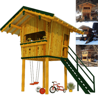 Our playhouse blueprints are not difficult to understand at all. The playhouse is a simple timber frame structure, and the PDF plan comes with all the dimensions, detailed instructions, and step by step illustrations to make the construction as easy as possible for you. You can follow DIY kid’s playhouse plans strictly, or you can add any adjustment or invention you wish. You can play around with the color scheme, decorate in various ways just as your children like, you can have a proper window or leave only an opening in the wall, you can use the space beneath for a swing, you can add a slide next to the stairs coming down or anything else that your or your children’s’ imagination will come up with. We promise they will love it! If you feel like elevated playhouse is not the right one out of our playhouse blueprints, have a look at our Crooked Playhouse.