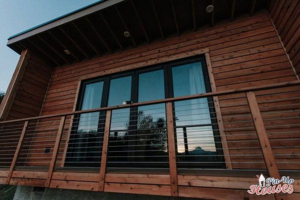 It is actually the Sheena small house, but the outside has rather mountainous, natural character thanks to the facade of unpainted decks. The foundations are also more massive and form a fully-fledged foundation plate. The large window was kept and takes full advantage of the beautiful view from the parcel. The house now serves as Airbnb accommodation.