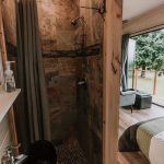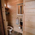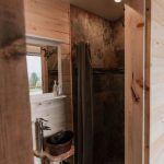 Wood and stone are also the materials that were used in the bathroom with the toilet. The pictures show how the bathroom matches the rest of the interior and is not left behind. An interesting small sink and a discreet shower are worth mentioning.
