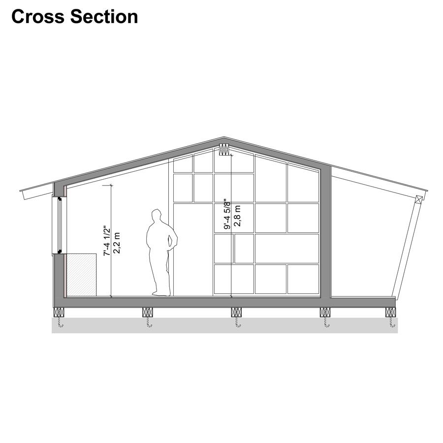 | L X W | 25′-4″ x 23′-1″ / 7,8 x 7,1 m |