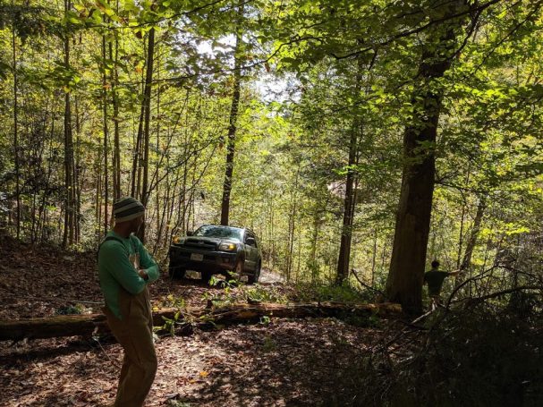 “Sandra” is being built in a wooded valley filled with rock cliffs and waterfalls in Eastern Kentucky in the United States. The terrain is very steep so it was necessary to grade out a spot for the foundation.