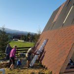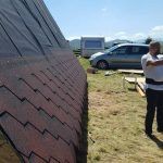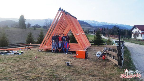 As the house’s design suggests, if you look at the house from the cross-section, you will see one large triangle. All the sides of the triangle are of the same length, so the framing is not that difficult. The average procedure is to construct the first frame and then mimic that for all the others. However, to do so, you will need a large flat and even area, as otherwise, you risk inaccuracies that could later cost you have to go through the building process all over again. But this was not Dan’s case, and so you can see the perfectly accurate triangles in the pictures below.