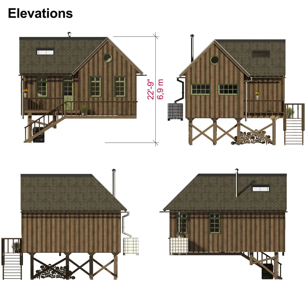 Small Hillside House Plans Claire is primarily a recreational building with a porch and gable roof. With her rustic design, Claire belongs to our family of traditional log cabin DIY house plans. The dispositions of this tiny house offer an enormous spacious living room that evokes loft. As is standard with our single bedroom house plans, the design also offers a kitchen, bathroom, and bedroom, perfectly aligned to provide comfortable living with a little need for space-saving solutions. The design of the house is aimed especially for uneven terrains that require specific foundation designs. With our plan, however, you can build your own house all by yourself! ALL YOU NEED IS LOVE… for our rustic cabin plans… and a little bit of skill… and, of course, our best-seller: HOW TO BUILD A TINY HOUSE!