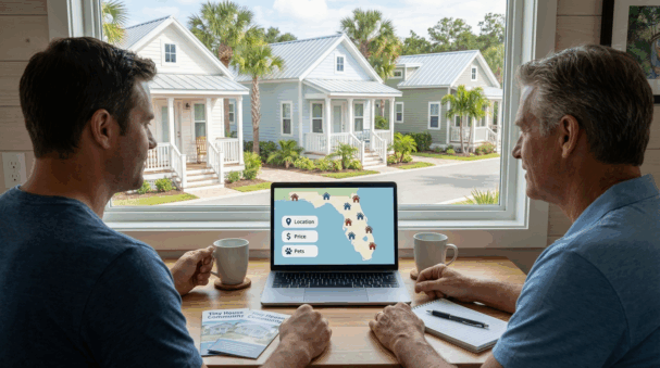 - Start online. Plug location, price cap, and pet policy into the Florida tiny-community directory. The county map shows lot-rent ranges at a glance and flags parks that allow bring-your-own certified homes, trimming a hundred options to a handful.