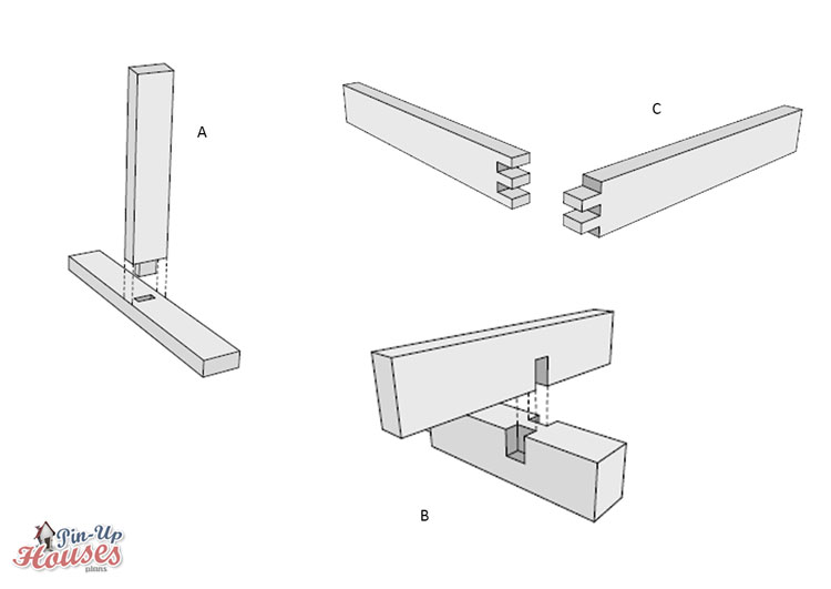 Stressed joints use carpentry joints instead of just mechanical metal fasteners in your DIY tiny house to achieve a necessary structural rigidity. Notches, tongues or holes are made in connecting structural members using sharp chisels, drawknives and other tools creating perfectly smooth surfaces in order for the members to perfectly interlock without any gaps or movement potential. If properly design, this together with the self-weight and supplementary support from walls, buttresses and other parts of structure is sufficient to resist gravity and lateral forces.