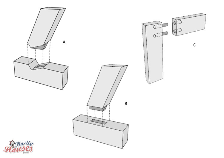 Another advantage compared to the mechanical framing connectors is that they are made of wood just same as the rest of your DIY tiny house or small cabin, because in case of exposure to moisture their reaction and volume changes are similar to those of the entire structure. However they must be crafted properly and precisely, so a professional carpenter is often required.