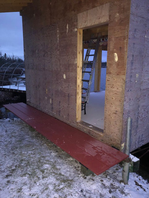 Our cabin is an adaptation of your Marlene which we modified a bit. We thought the loft could benefit from a higher ceiling so one could walk standing by the wall. Other modifications to the Marlene design were to reduce the front roof overhang length because of high wind concern during storms. And also lengthen the back overhang to shelter a small woodpile and the bathroom addition.