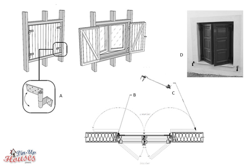 - A) Window shutters – Extended hinge details