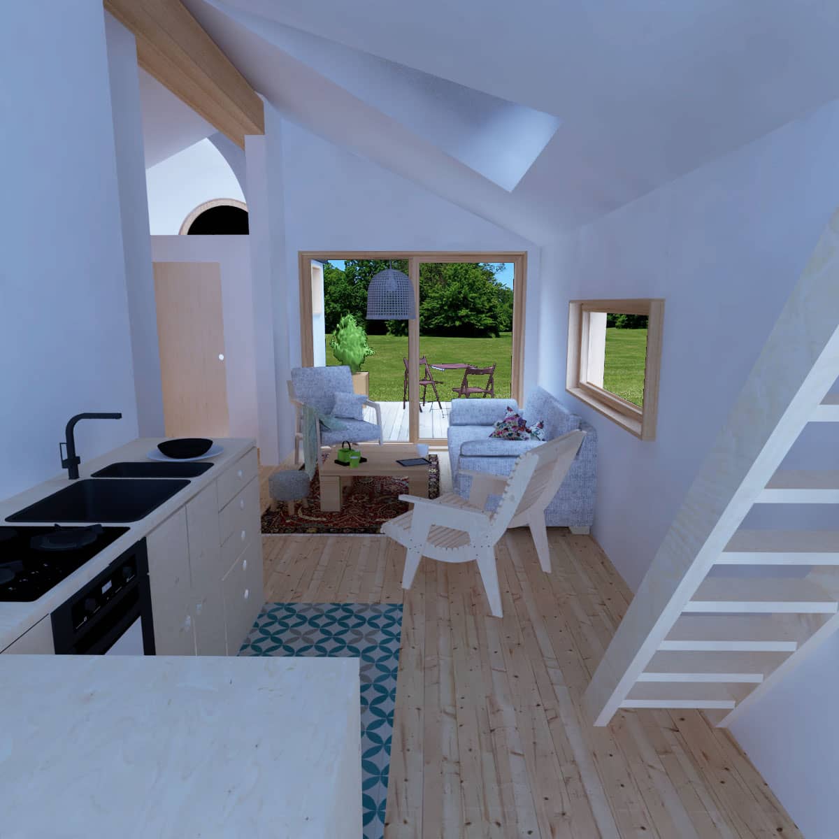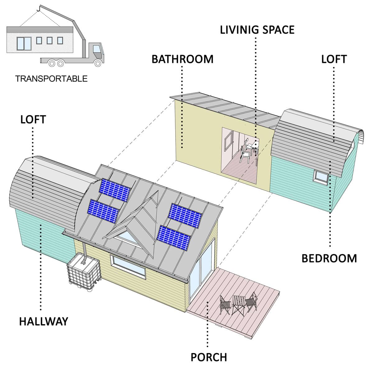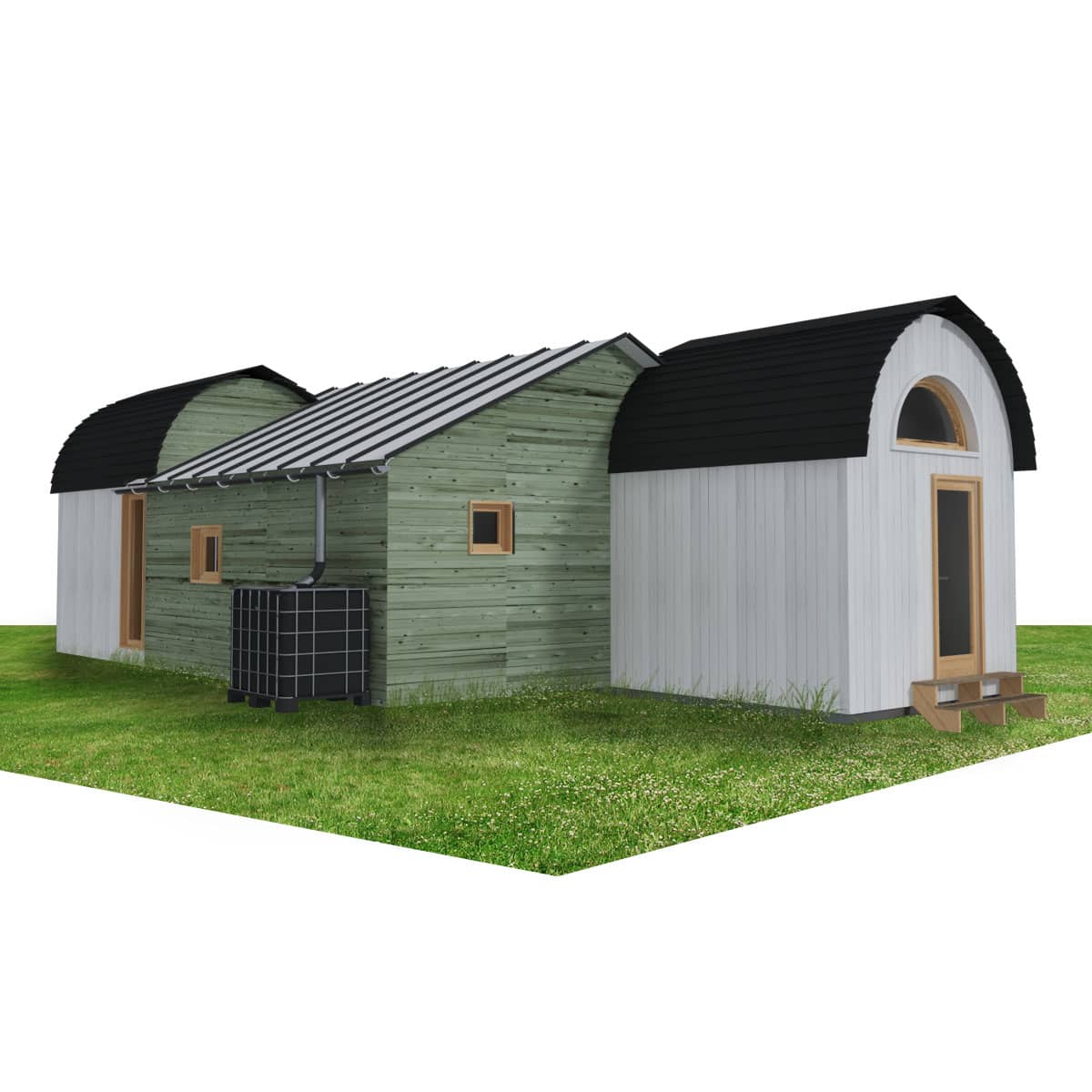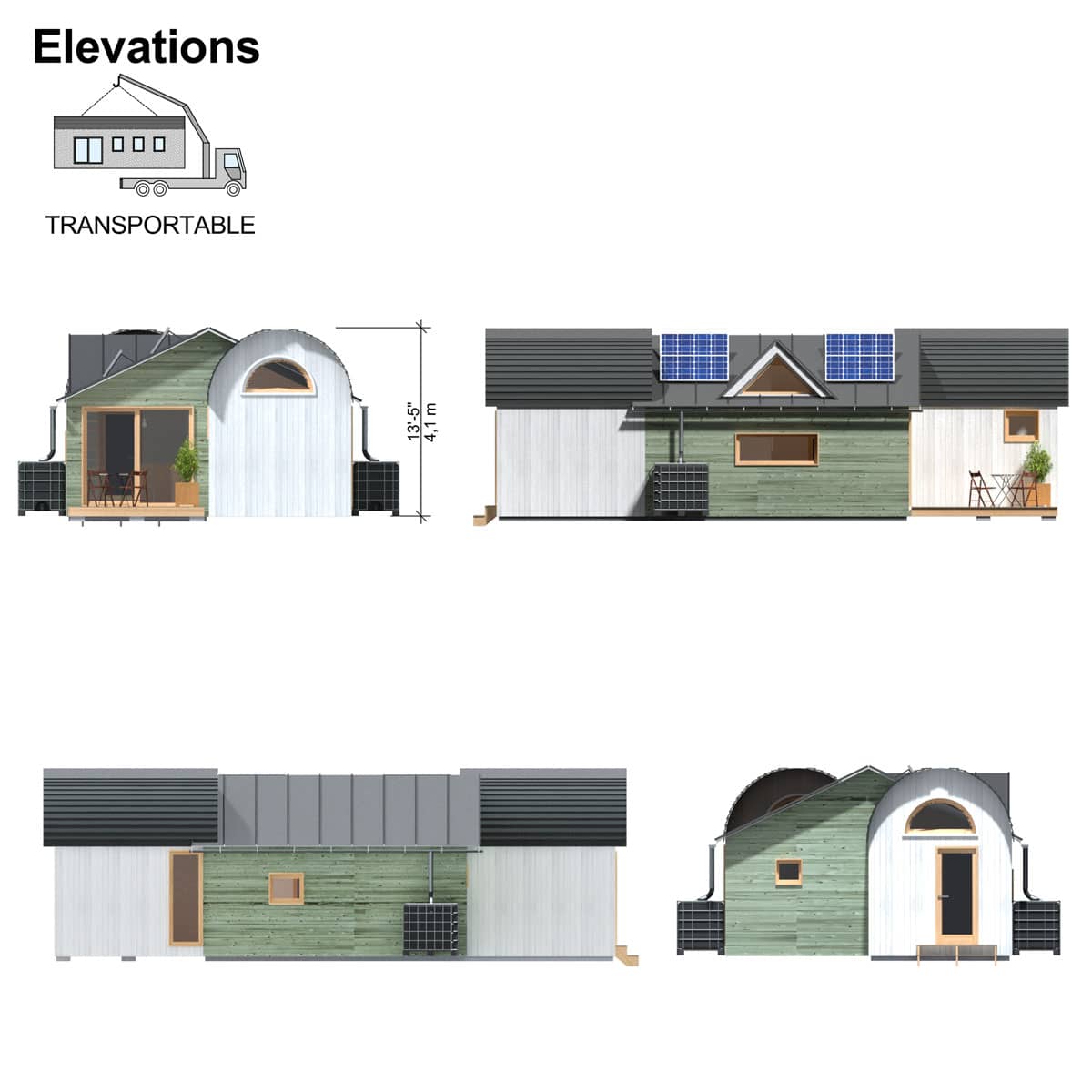 Complete off-grid small house plans (pdf): layouts, details, sections, elevations, material variants, windows, and doors.
