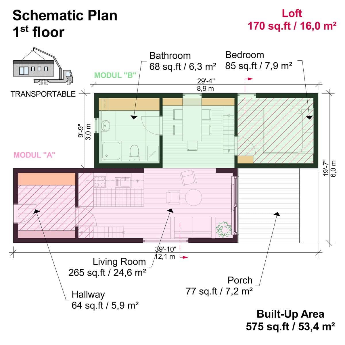 | Built-Up Area | 575 ft² / 53,4 m² |