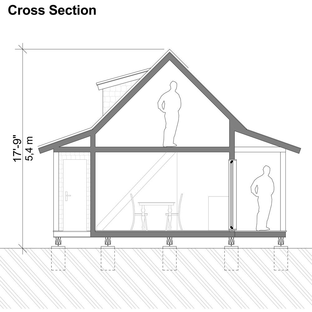 Complete cabin plans (pdf): layouts, details, sections, elevations, material variants, windows, doors.