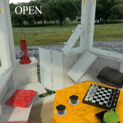 Nefertiti is a gorgeous DIY gazebo. It is among our most elegant wooden shed plans and gazebo designs. It is a perfectly symmetrical hexagonal gazebo with a pitched roof with a sun decoration on top. The entrance to get inside the gazebo is incorporated in one of the walls but hardly discernible when it is closed so that it does not disturb the clear and subtle design of Nefertiti. An important part of this DIY gazebo is a table. It is a handy addition when you are enjoying time in the gazebo with your friends or family, as you can use it as a dining table, coffee table, play a boarding game, or anything else you wish. It conceals a little storage place for some of your things to be put in, and there is a bench attached to the walls alongside the entire circuit of the gazebo.
